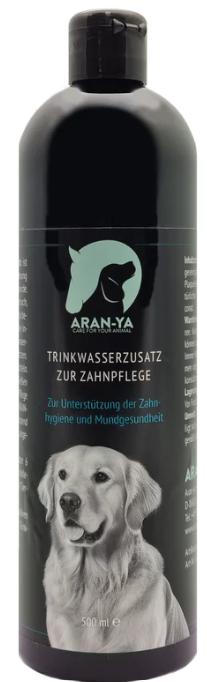 Für eine umfassende Pflege der Zähne von Hunden ist es sinnvoll die ARAN-YA Zahncreme für Hunde anzuwenden, ergänzend kann das ARAN-YA Mundwasser für Hunde oder der ARAN-YA Trinkwasserzusatz eingesetzt werden.